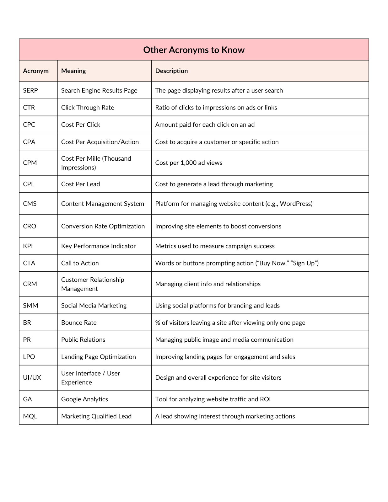 Here are additional must-know acronyms for navigating the digital marketing world: